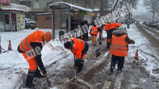 Муниципальные дорожные службы с утра работают на магистралях и в жилых районах Донецка.