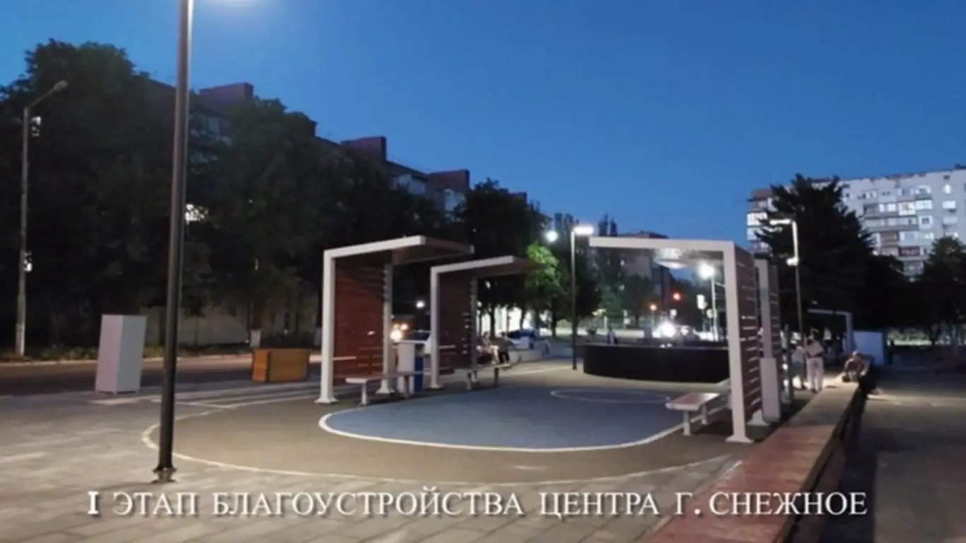 — первый этап благоустройства центра Снежного (улицы Ленина и Гагарина, ЦКД «Снежинка»).