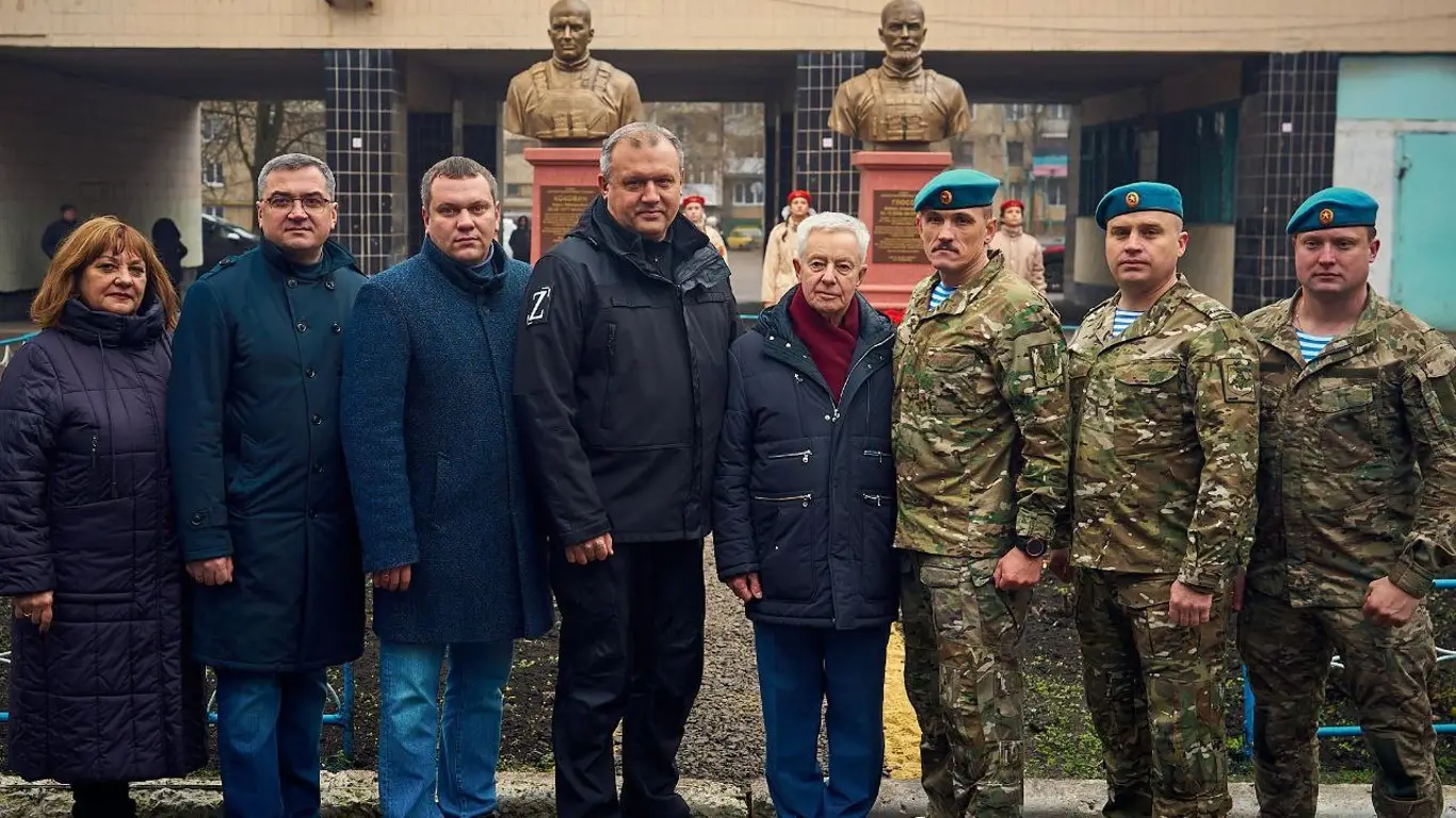 В донецкой школе №115 открыли бюсты кавалеров ордена Мужества к Дню Героев Отечества