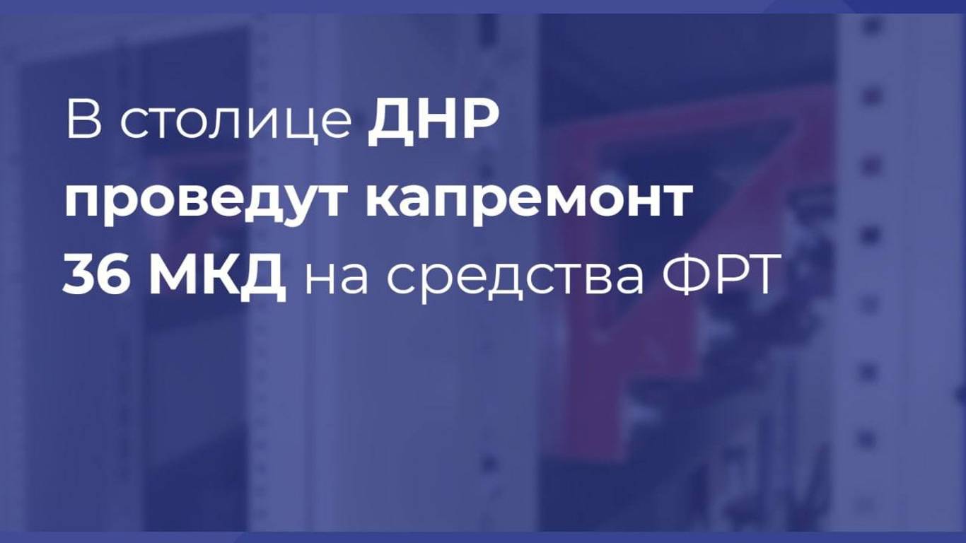 В Донецке за счёт средств финансовой поддержки Фонда развития территорий планируется провести капитальный ремонт 36 многоквартирных домов.